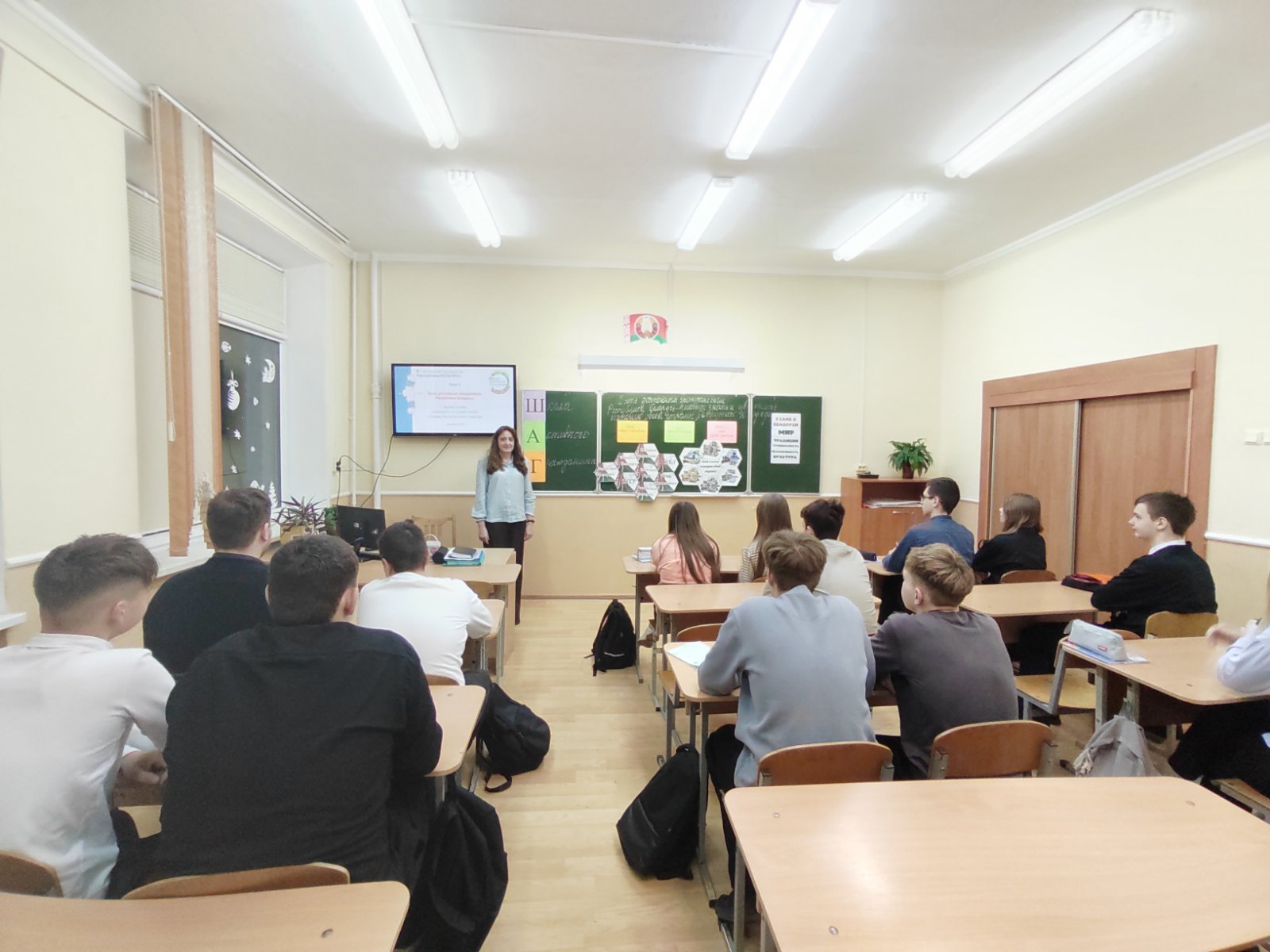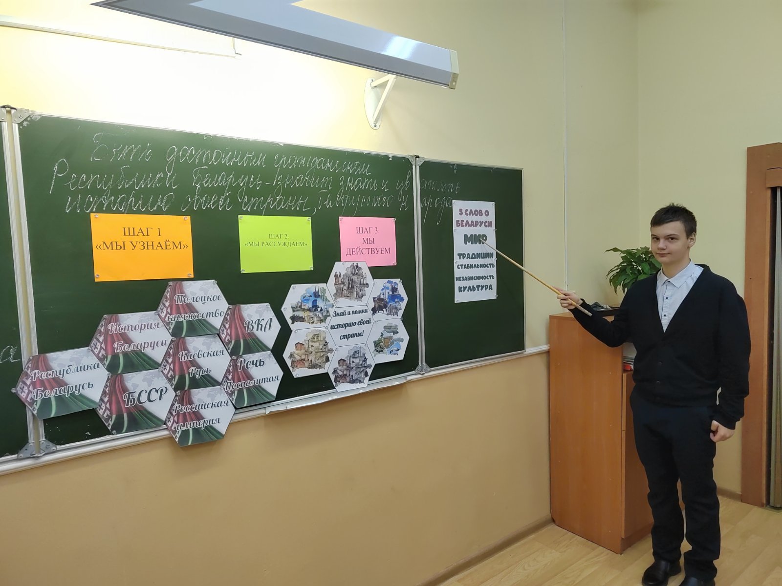 23 декабря 2025 г. в средней школе № 5 г. Волковыска состоялась тематическая встреча в рамках проекта «Школа активного гражданина». Актуализация и систематизация знаний учащихся об основных этапах истории Беларуси– основная цель данного мероприятия, которая была реализована в ходе интерактивной беседы МЫ УЗНАЁМ → МЫ РАССУЖДАЕМ → МЫ ДЕЙСТВУЕМ с использованием Ленты времени.