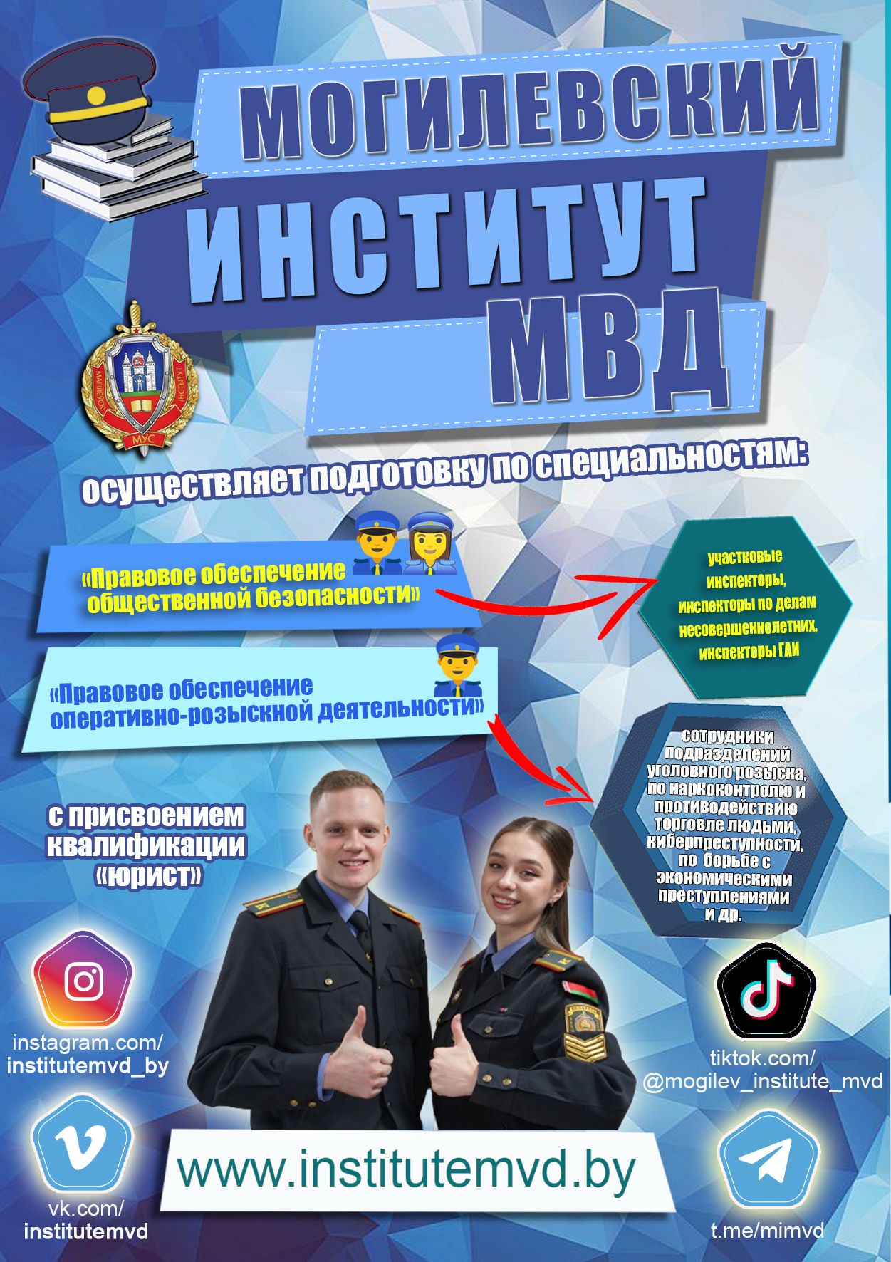 Академия и Могилевский институт МВД Республики Беларусь – одни из престижных вузов нашей страны. Здесь осуществляется подготовка специалистов в дневной и заочной формах получения высшего образования.